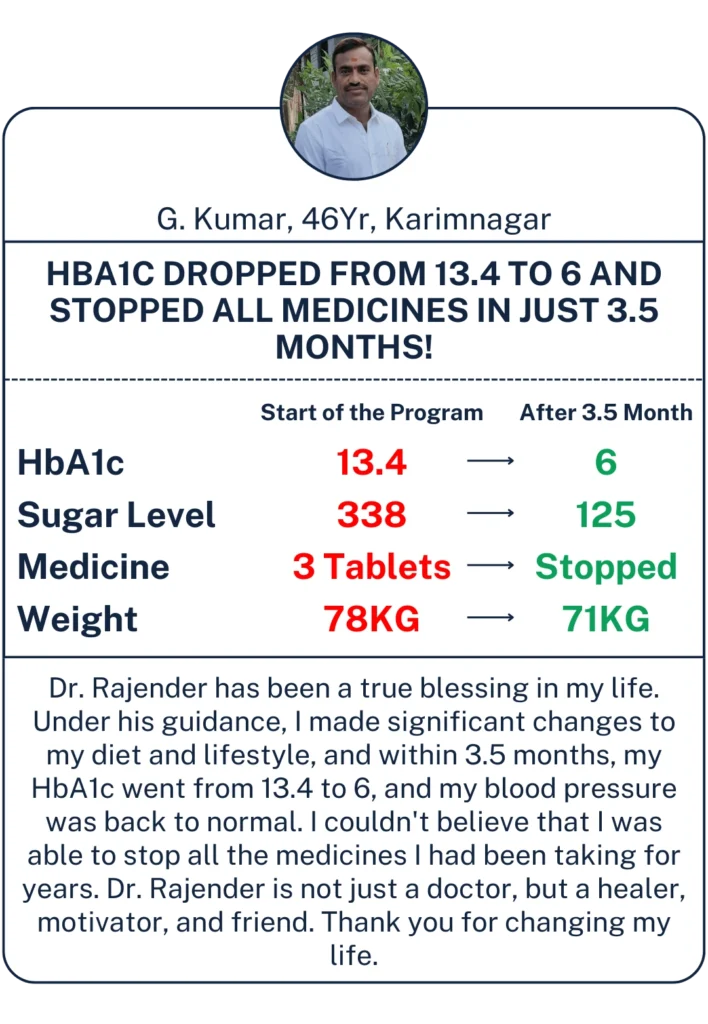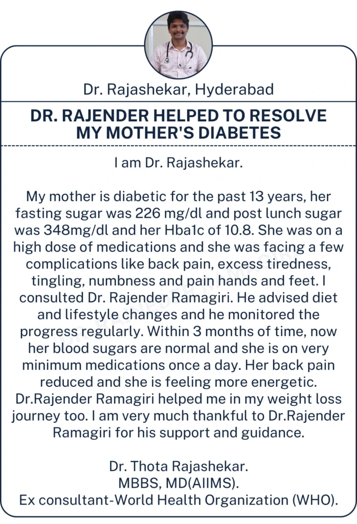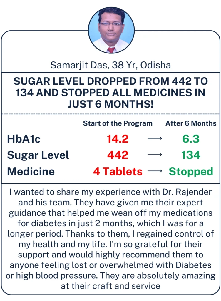 At Dr. Rajender’s clinic, the focus is on understanding what drives diabetes in your body and correcting it step by step under medical guidance.
